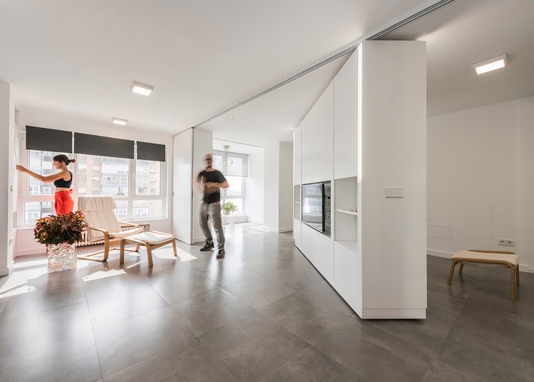 Lidando com uma planta limitada, mas com múltiplos usos previstos, PKMN Architectures criou unidades móveis para um apartamento em Madri.
