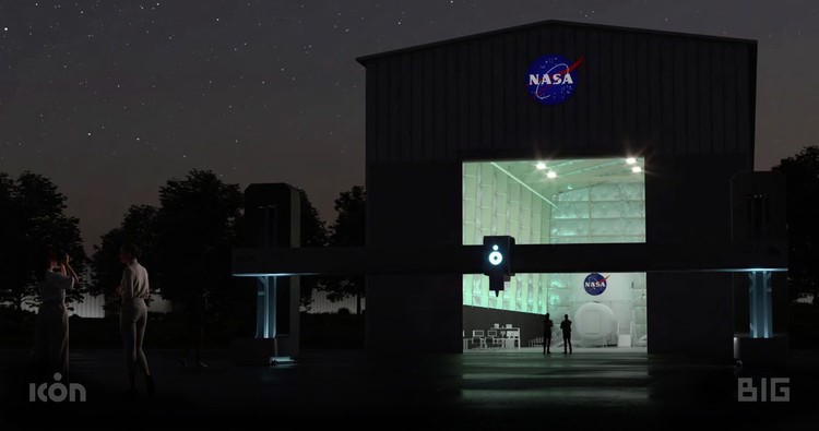A estrutura, que está atualmente localizada no Johnson Space Center em Houston, Texas, foi projetada pelo renomado escritório dinamarquês de arquitetura, impressa em 3D pela equipe da ICON, e em breve será o lar de uma equipe da NASA.