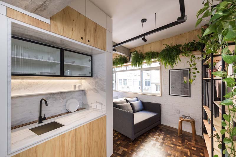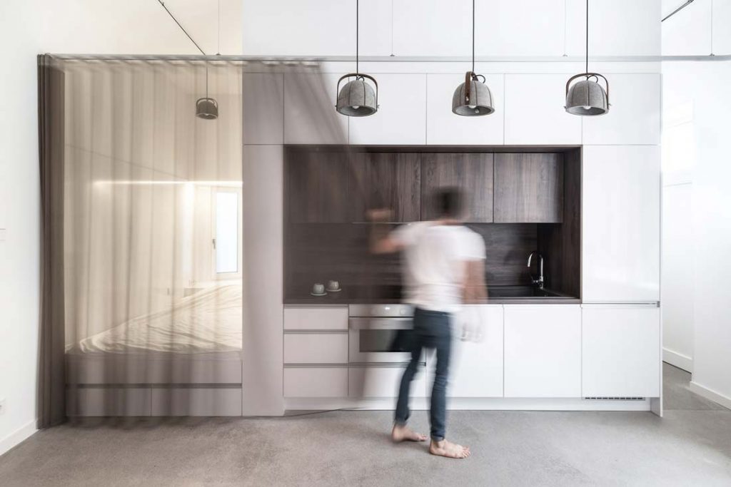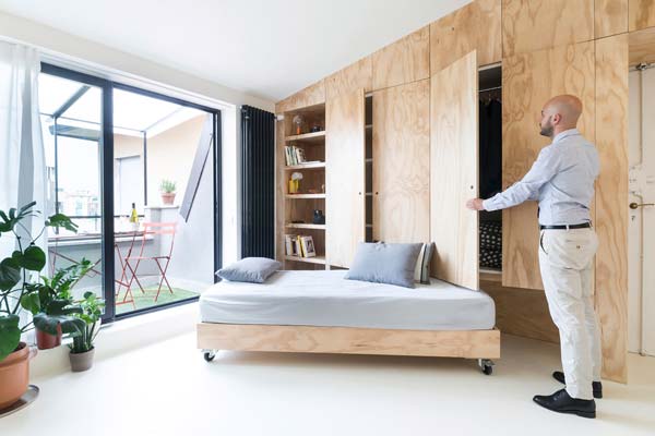 Em projetos com pouca área útil, flexibilidade é uma palavra-chave. Escadas utilizadas como armários, mesas retráteis, camas com gavetas embutidas e mobiliário sobre rodas são alguns exemplos d esoluções recorrente sem espaços com área reduzida para economizar espaço e resolver mais de uma função em um único elemento