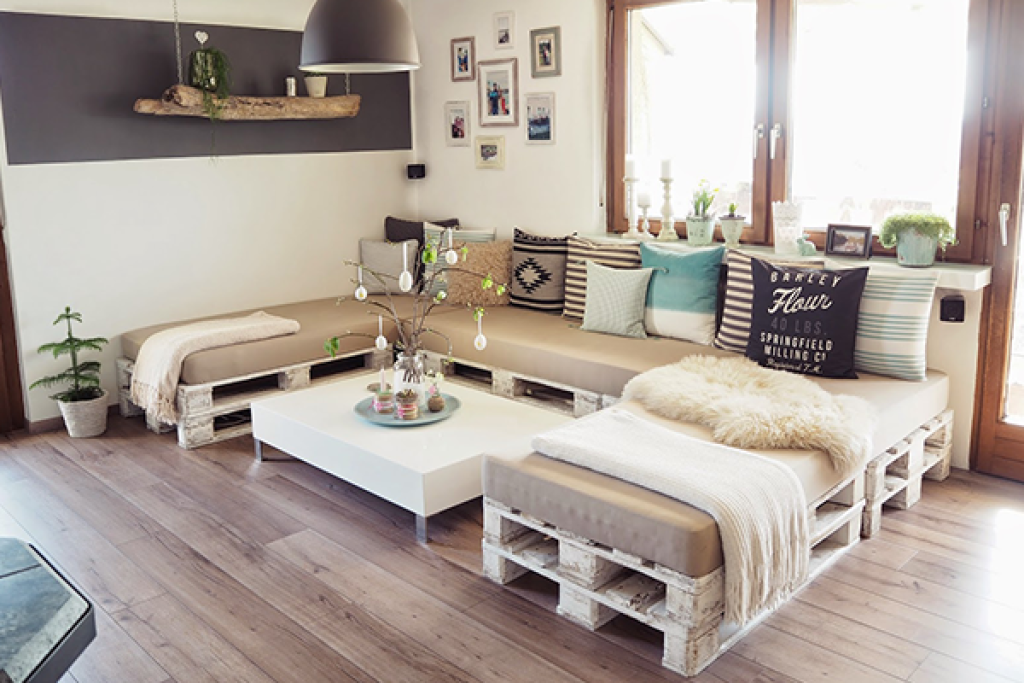 O sofá de pallet é uma alternativa perfeita para decorar a sala com muito mais estilo.