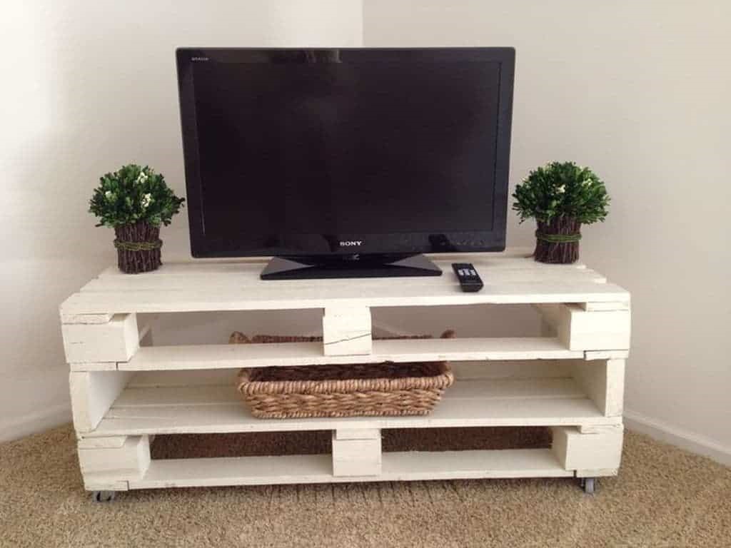 Se preferir uma versão mais compacta dá para montar um painel para TV usando os paletes.