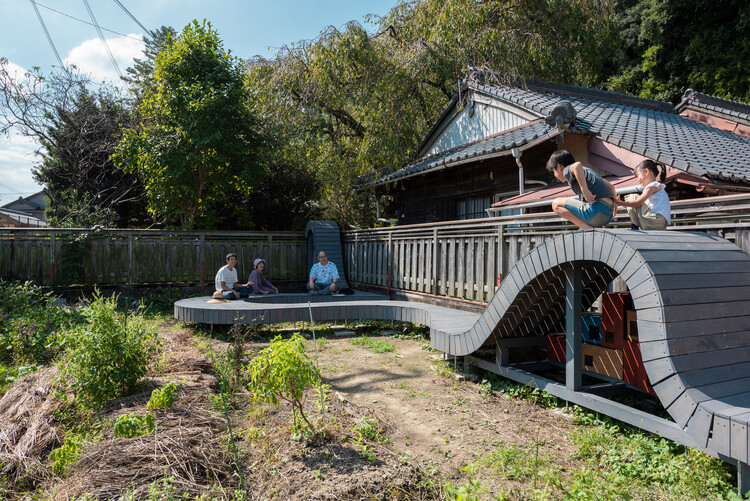 “Muitos estudos foram realizados sobre como criar um ambiente onde as pessoas possam visitar, ler livros e interagir. Investigamos as mudanças na posição do sol, mapeamos o que gostaríamos de fazer no Parque Oishii e examinamos como seria a sua aparência desde a escola primária e seu entorno. (…) Como resultado da sobreposição, decidimos criar um longo banco tridimensional que flui na extremidade oeste do terreno (remetendo aos rios, cachoeiras e montanhas de Kumano). Por se tratar de uma construção DIY, pode ser construída sem habilidades especializadas e, ao mesmo tempo, também há um processo onde é possível aprender técnicas de carpintaria”.