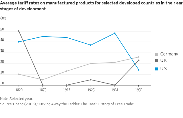 Apesar de seu perfil laissez-faire durante a fase em que tentou alcançar o Reino Unido no século 19, os EUA foram um fervoroso proponente do protecionismo industrial. Sucessos mais recentes, como Japão e Coreia do Sul, dependeram fortemente de setores favorecidos pelo Estado e de mercados de exportação.