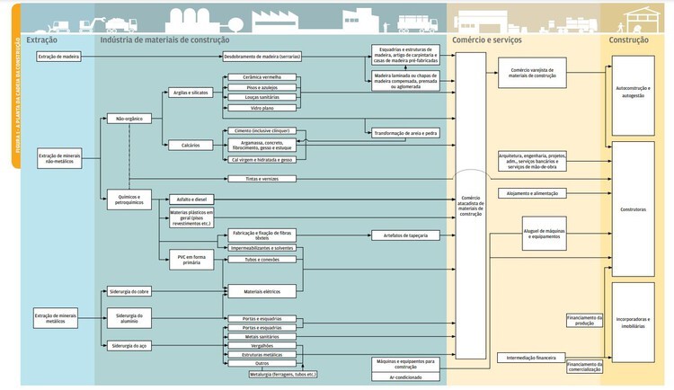 Esses insumos são, em seguida, comercializados até que chegam ao consumidor final, a construção em si.