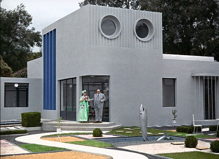 A casa moderna em Meu Tio (1958) não parece facilitar a vida de M. Hulot. Fonte: https://girlsdofilm.wordpress. com/2015/09/20/mon-oncle-m -hulot-is-puzzled-by-modernism/