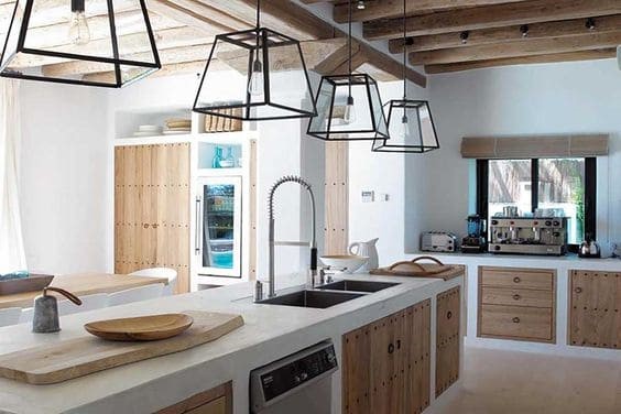 Mas uma cozinha de alvenaria também pode ser inspirada no estilo das casas mediterrâneas, que são marcadas por materiais naturais e ampla presença da cor branca nos projetos.
