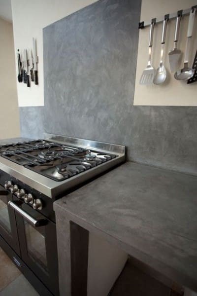 Um dos acabamentos mais comuns em cozinha de alvenaria é o cimento queimado.