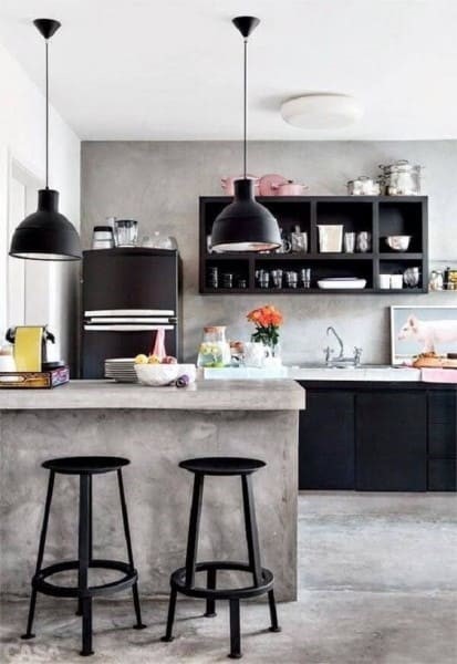 3. Cozinha de alvenaria: bancada de cimento queimado (foto: Pinterest)