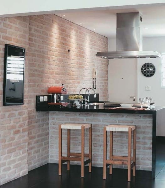 20. Balcão de alvenaria para cozinha americana com tijolinho à vista (foto: Pinterest)