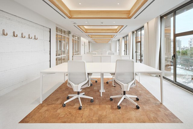 “Foi inspirado na estética Noucentisme, tanto em composição, cor, textura e materiais”, explicam os arquitetos do projeto SCOB sobre o piso instalado nos escritórios LOOM na Plaza Catalunya, no centro de Barcelona. O projeto de reforma “os reinterpreta como recursos na reorganização dos espaços”.
