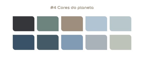 A paleta de cores pode ser usada em diversas situações, como na criação de materiais de design gráfico, composição de looks, maquiagem e, claro, na arquitetura e decoração.