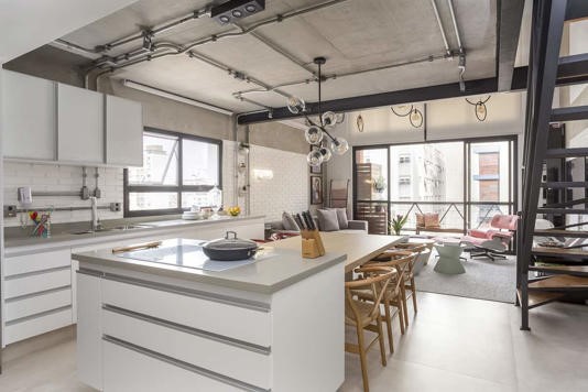 “Assim, ela garante que o estilo do apartamento esteja de acordo com as estruturas, reforçando a estética industrial”, dizem.