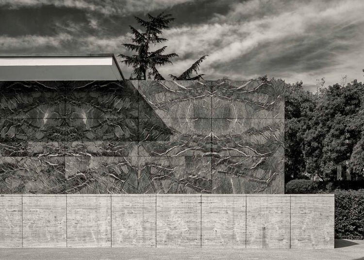 Em 1929, devido à escassez de mármore verde e travertino, as paredes externas e a parte traseira do pavilhão não foram revestidas, mas pintadas de verde e amarelo para remeter à pedra.