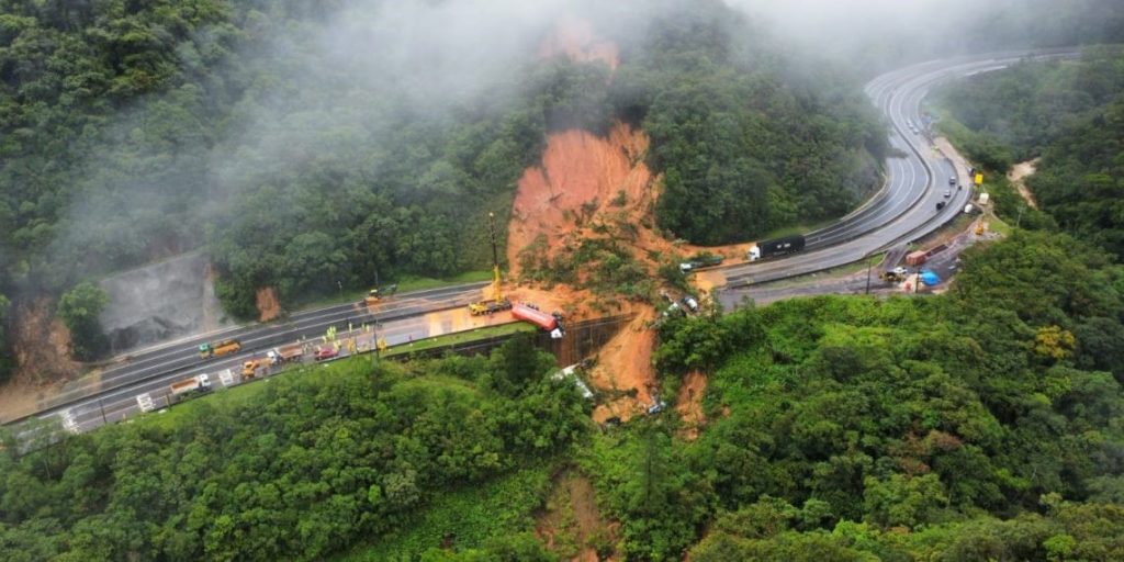 A concessionária Arteris Litoral Sul informa que o trecho da BR-376/PR, km 668,7 em Guaratuba, permanece com interdição total devido ao deslizamento de encosta ocorrido na noite da segunda-feira (28).